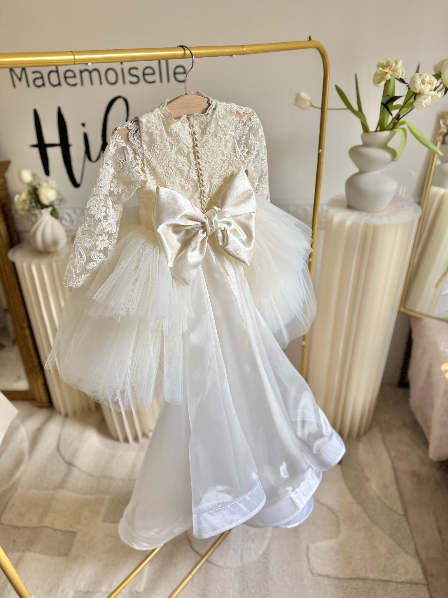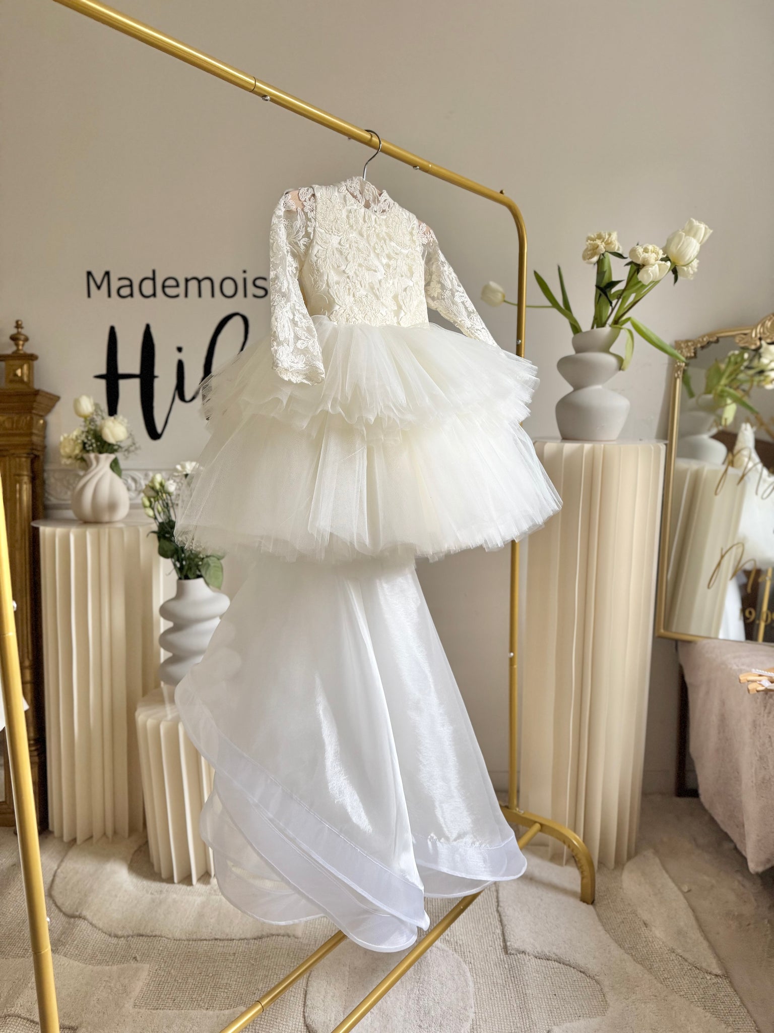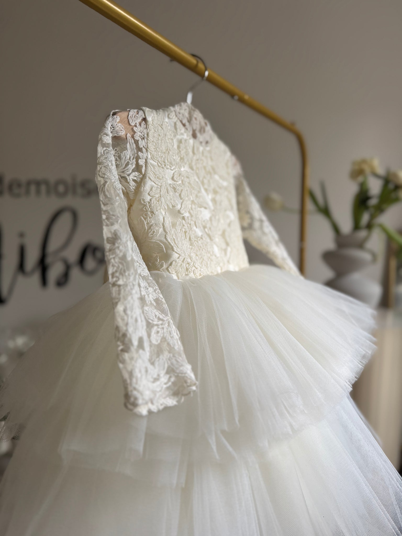 La robe Lou est une pièce d'exception, véritable chef-d'œuvre de délicatesse conçu pour les moments les plus précieux. Entre romantisme et modernité, elle transforme chaque petite fille en une véritable icône d'élégance.