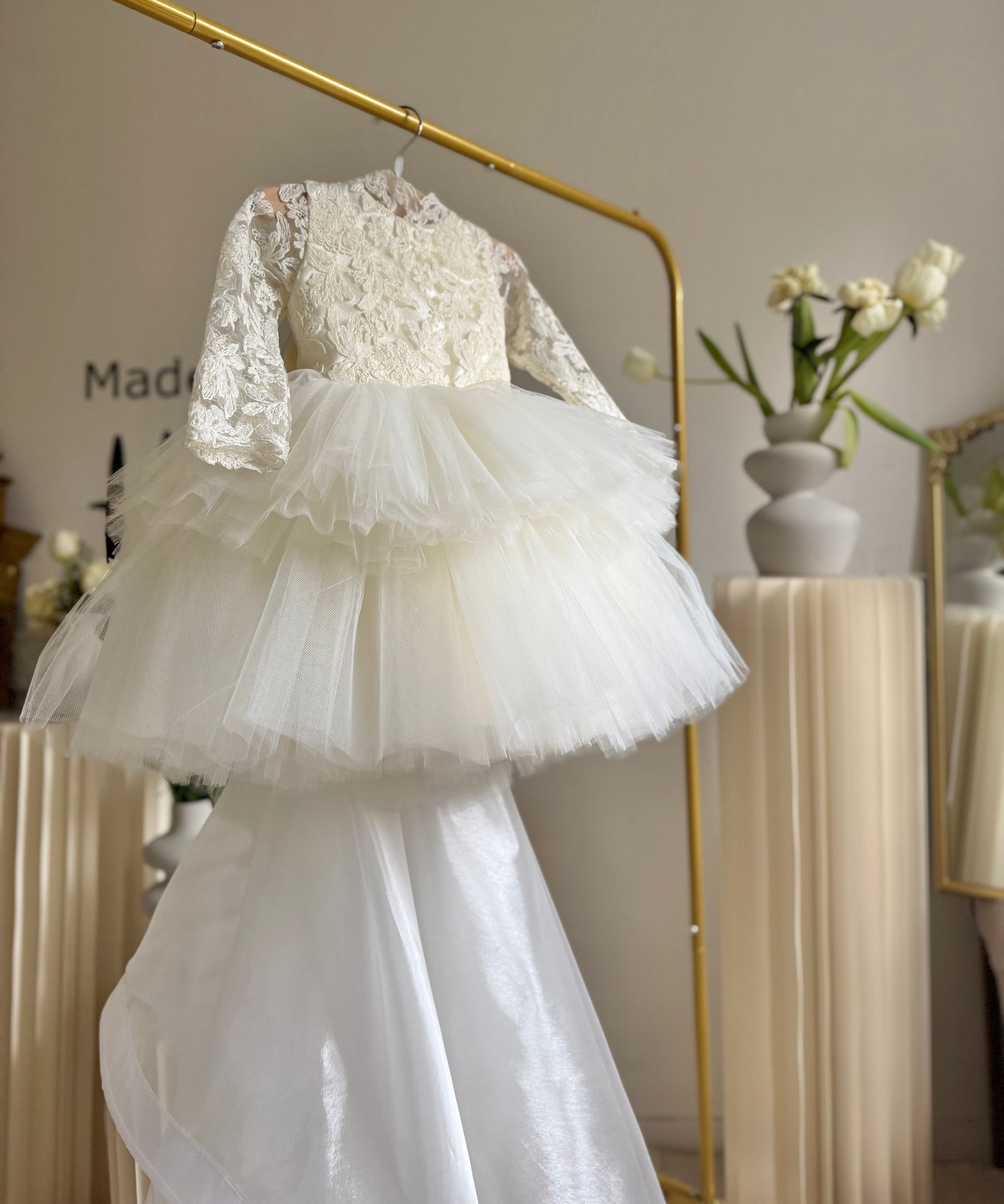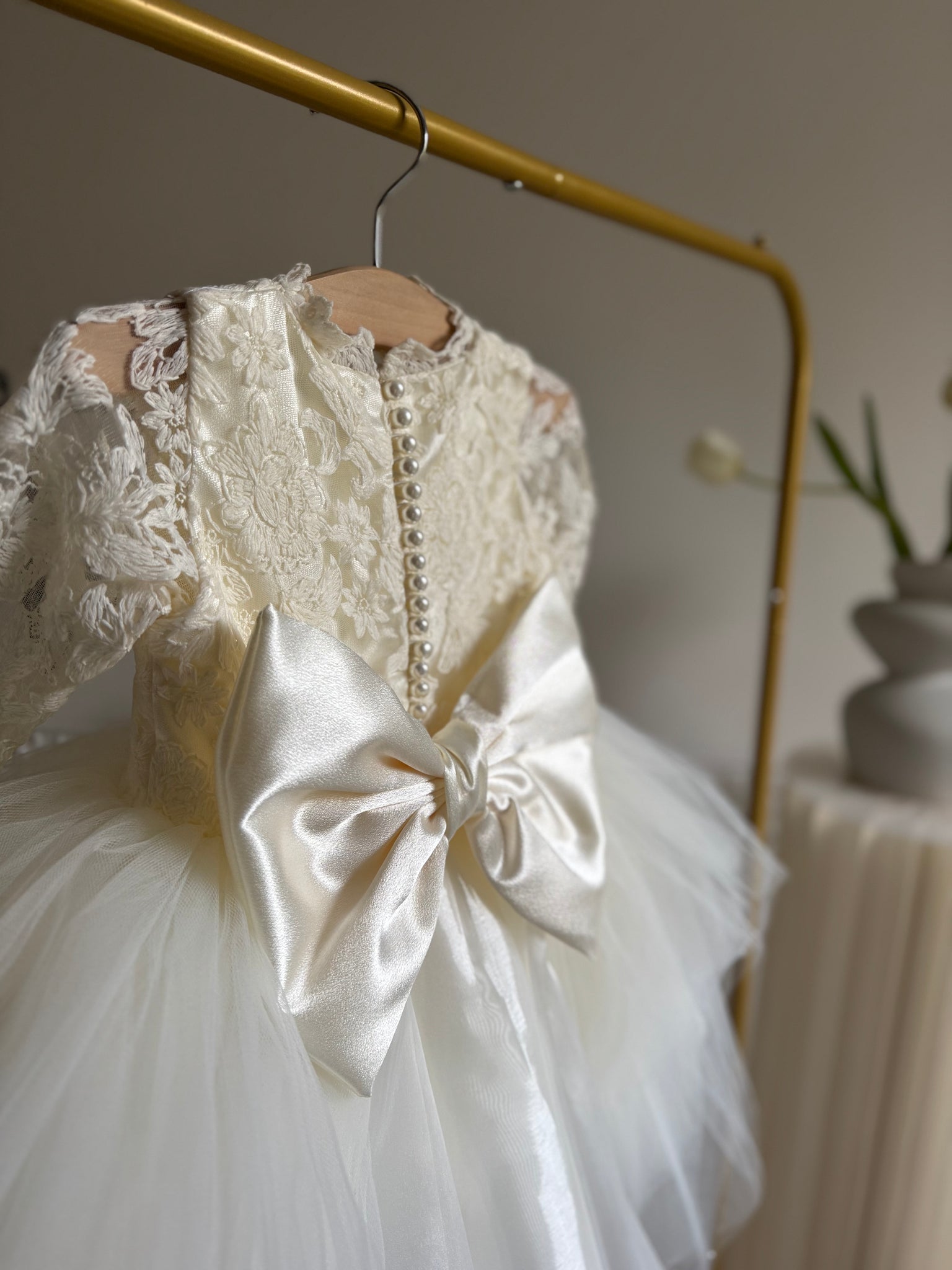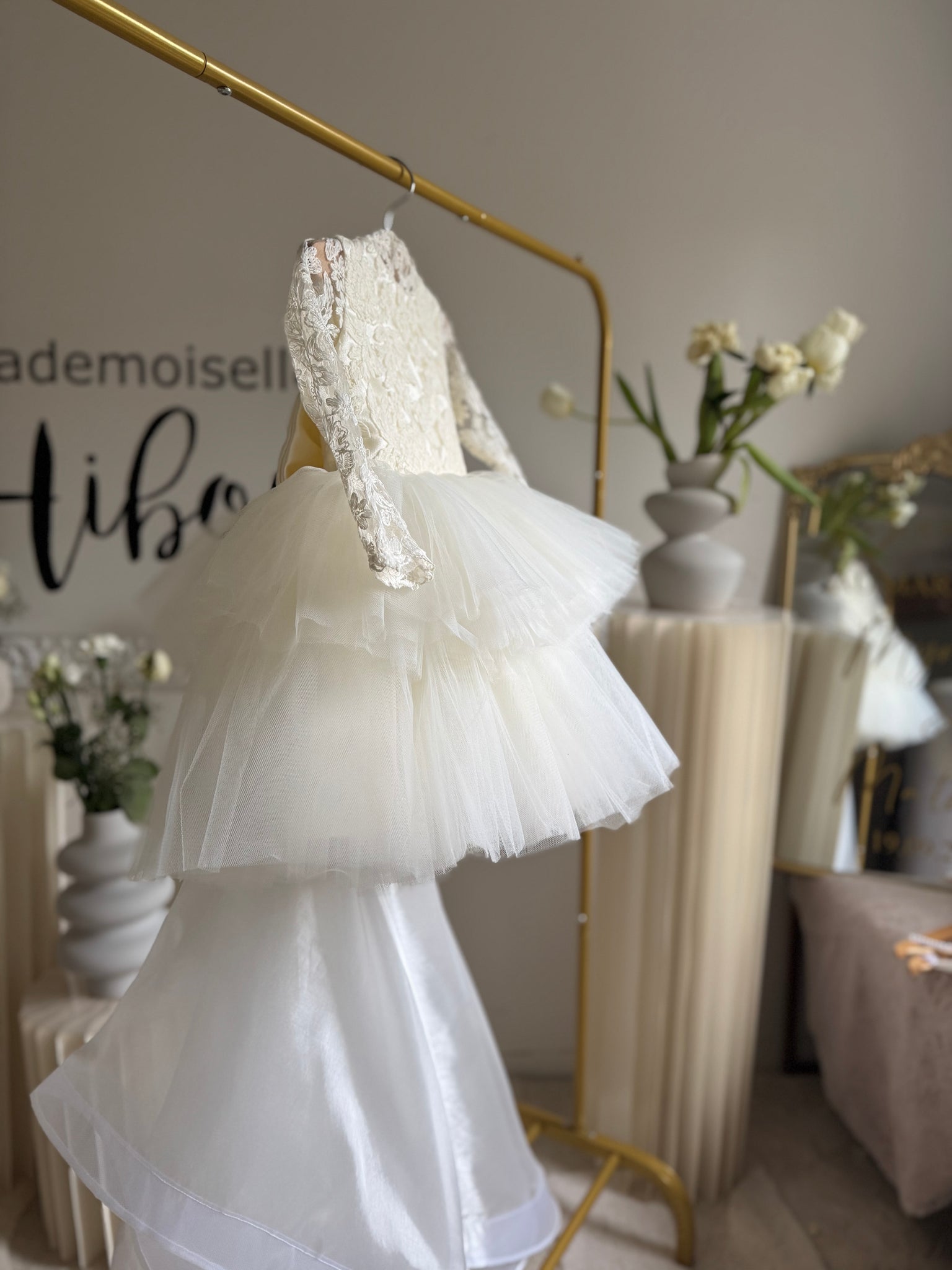 La robe Lou est une pièce d'exception, véritable chef-d'œuvre de délicatesse conçu pour les moments les plus précieux. Entre romantisme et modernité, elle transforme chaque petite fille en une véritable icône d'élégance.