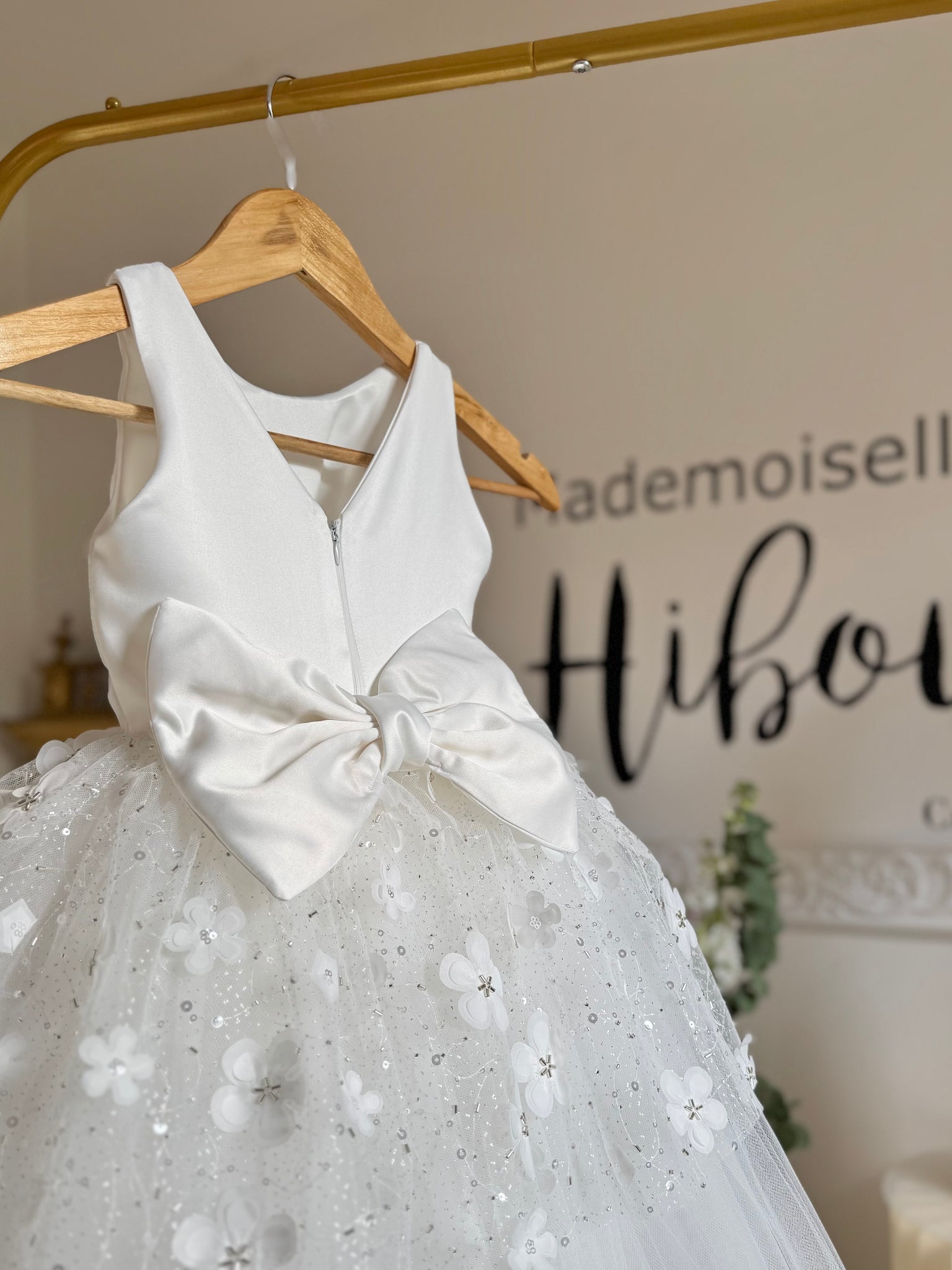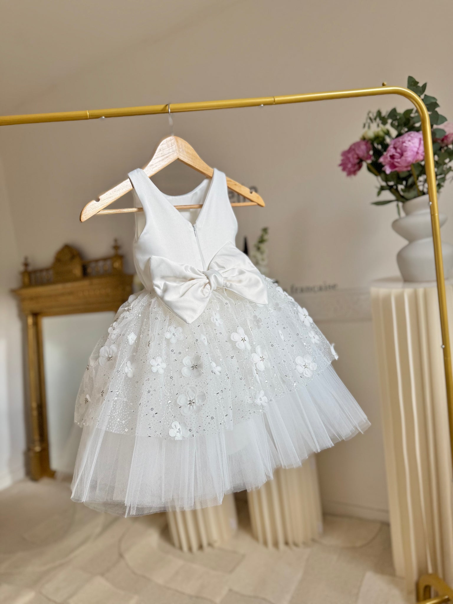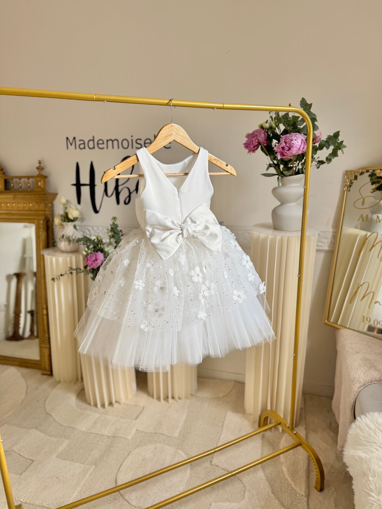 Faites briller les moments d'exception avec la robe Maria, une création magistrale qui allie élégance intemporelle et détails féeriques. Conçue pour les grandes occasions (baptêmes, mariages, communions), cette robe est une véritable ode à la douceur et au raffinement français.